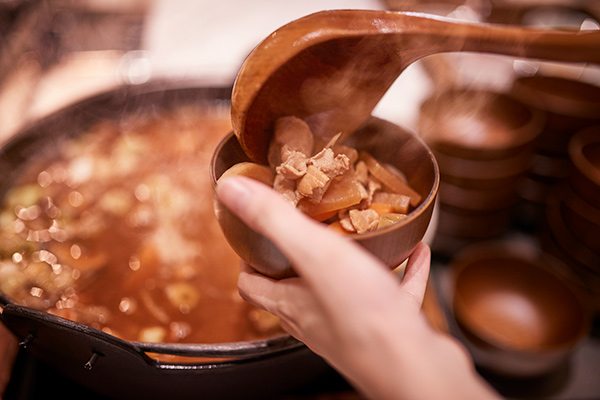 This delicious soup combines generous servings of vegetables with the chef’s original mixed miso. We serve it hot every morning.